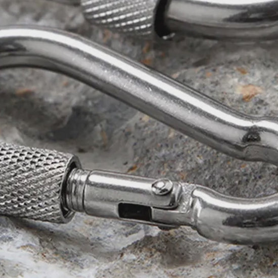 Emergency Situations: In emergency situations, the carabiner clip can be used for a variety of purposes, such as creating makeshift harnesses, securing ropes, or constructing emergency shelters. In summary, the Steel Snap Hook with Screw Nut Carabiners is a versatile and essential tool for outdoor enthusiasts engaging in activities such as hiking, camping, fishing, and backpacking, providing a secure and reliable way to attach, organise, and secure gear in a variety of outdoor settings.