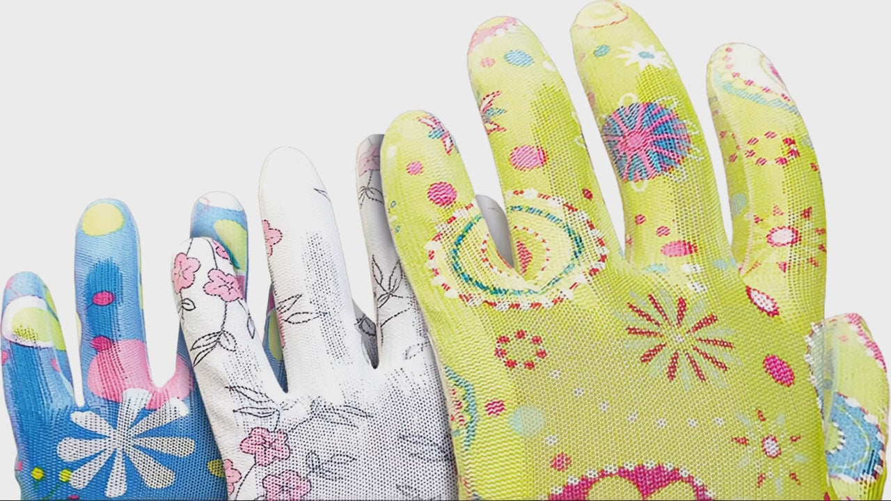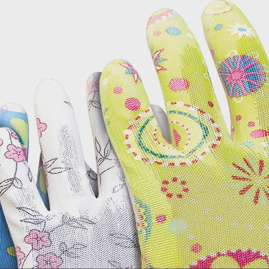 Ladies Floral Gardening Gloves (3 Pack) - Nitrile Coated Water-Resistant Work Gloves - Thorn Resistant Grip , Pruning & Wet Soil - Breathable Knit